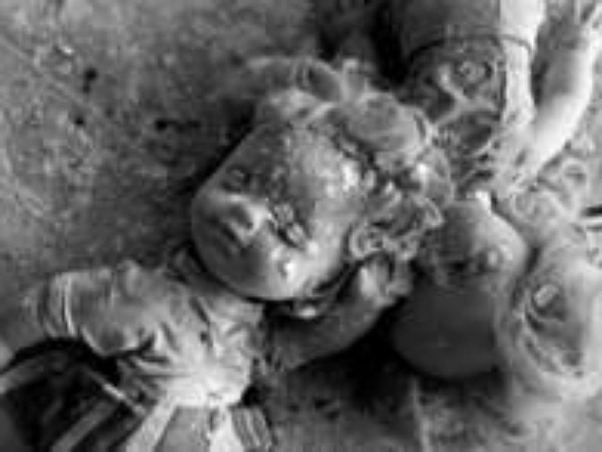 No jardim de infância Pequeno Urso, carteiras e cadeiras estão amontoadas e brinquedos abandonados jazem cobertos de poeira.