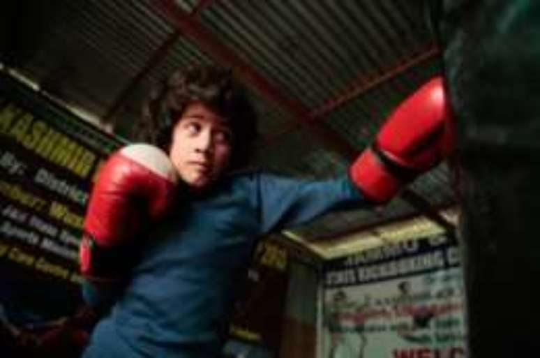 Todos os dias ela coloca as luvas, dá socos nos sacos de areia e faz seus alongamentos sob o olhar do treinador Faisal Ali. A menina chega a treinar 25 horas por semana, conta ele.