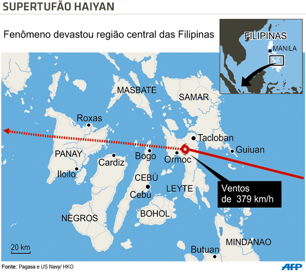 7 de novembro - A tempestade, que avança sem perder força, deve ser uma das mais intensas já resgistradas no planeta