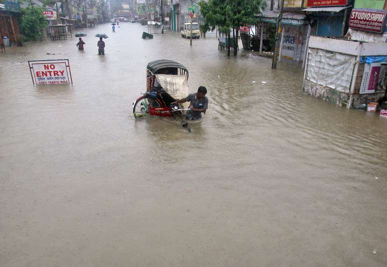 As chuvas também deslocaram milhares de pessoas na bela região do Himalaia e fizeram reviver memórias de um dilúvio mortal que matou mais de 5.000 pessoas no estado indiano de Uttarakhand.