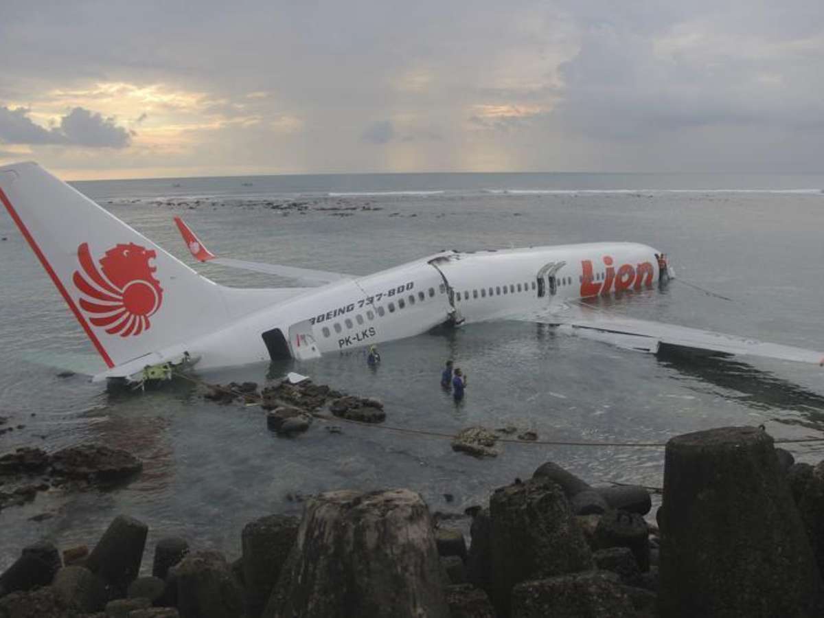 Todos os 108 passageiros e tripulantes sobreviveram miraculosamente quando um Boeing 737 da Lion Air ultrapassou a pista de pouso no agradável resort indonésio da ilha de Bali, neste sábado, e aterrissou no mar.