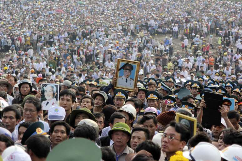 Centenas de milhares de vietnamitas saíram às ruas, chorando e rezando, para dar seu último adeus ao general Vo Nguyen Giap, herói da independência, que foi enterrado neste domingo em sua província natal.