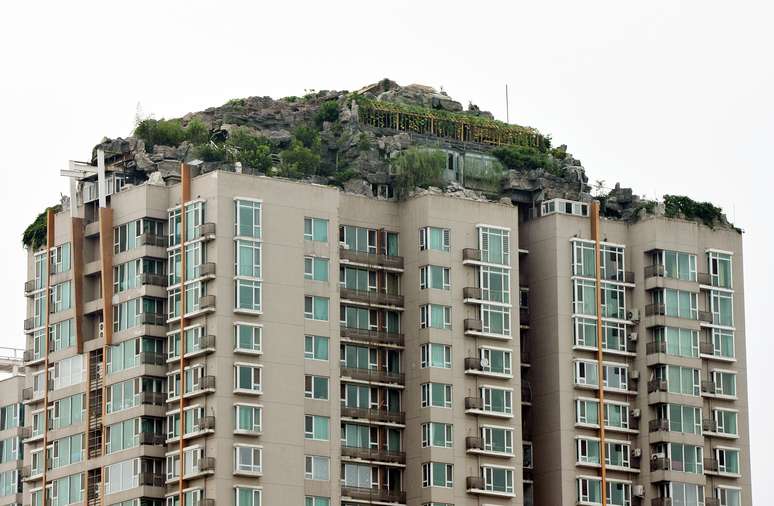 12 de agosto - Imagem do domingo mostra casa construída no topo do prédio em Pequim. Um excêntrico morador local construiu uma casa em meio ao que parece uma pilha de rochas e árvores no topo de um prédio de 26 andares na capital chinesa. No entanto, a construção não agradou os vizinhos, que dizem temer que a obra, de mais de 1 mil metros quadrados, leve a estrutura a desabar sobre seus apartamentos.