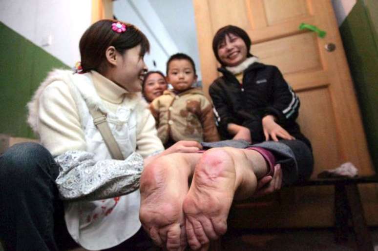 Wang precisa calçar os sapatos ‘ao contrário’, mas fora isso, disse que não existem muitas diferenças em relação às outras pessoas. Ela teve um filho com os pés normais e disse que, por tudo o que faz, não necessita receber pensão por invalidez.