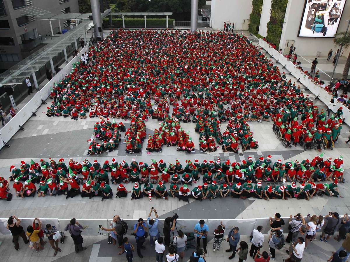 Mais de 1.790 estudantes se vestiram de ajudantes do Papai Noel para quebrar a marca anterior