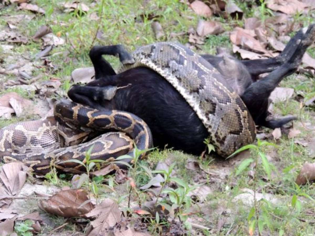 Segundo contou Choudhury, a cobra estava próxima da reserva florestal de Sonakhali quando foi vista devorando o animal inteiro. Ela tinha por volta de três metros e matou a cabra de forma lenta, terminando “o serviço” após quatro horas.