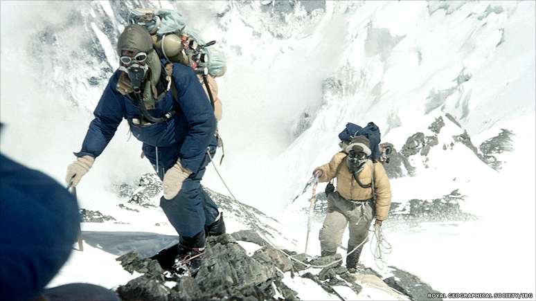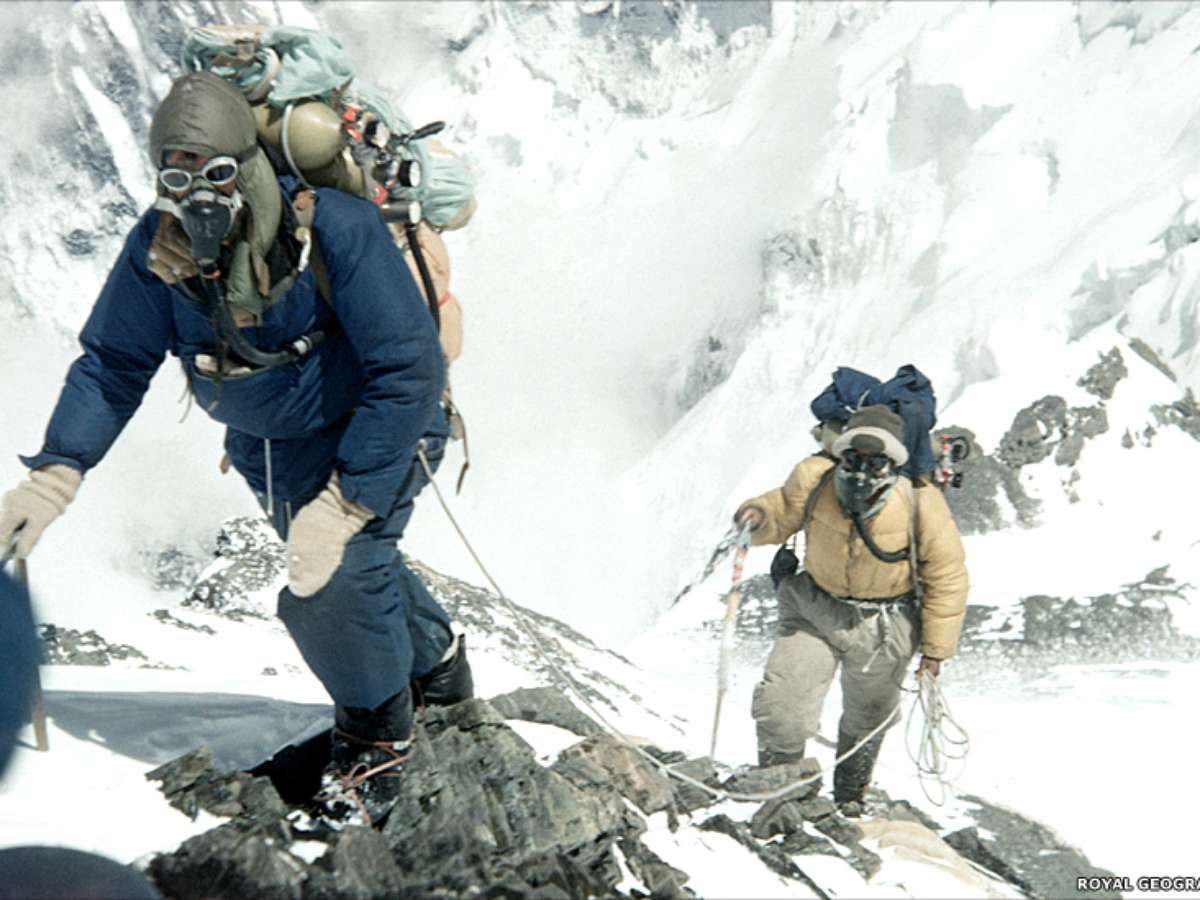 Em 29 de maio de 1953, dois alpinistas conseguiam um feito inédito: chegar ao topo da montanha mais alta do mundo, o Monte Everest pela primeira vez, após um mês de meio de expedição rumo ao teto do mundo. O neo-zelandês Edmund Hillary e nepalês Sherpa Tenzing Norgay alcançaram o topo do Everest às 11h30 locais, após uma difícil escalada pela face sul da montanha. A foto mostra os dois a 8,321 mil metros de altitude
