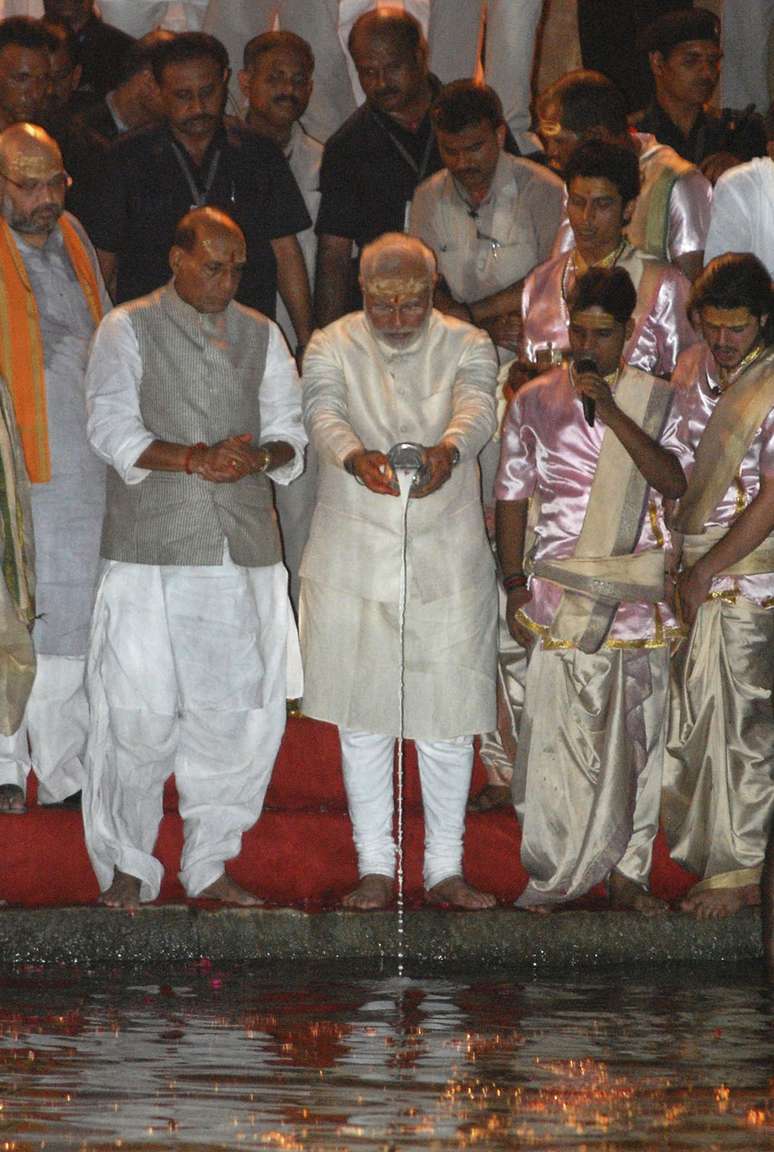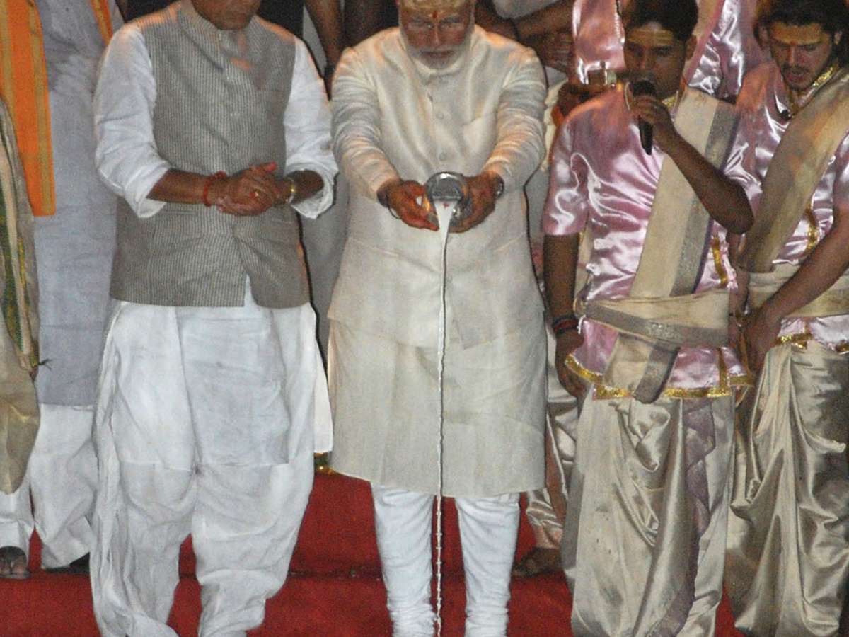 Em Varanasi (Benares), cidade santa do hinduísmo, Modi participou dos rituais hinduístas cercado pelos principais líderes do BJP e por milhares de simpatizantes.