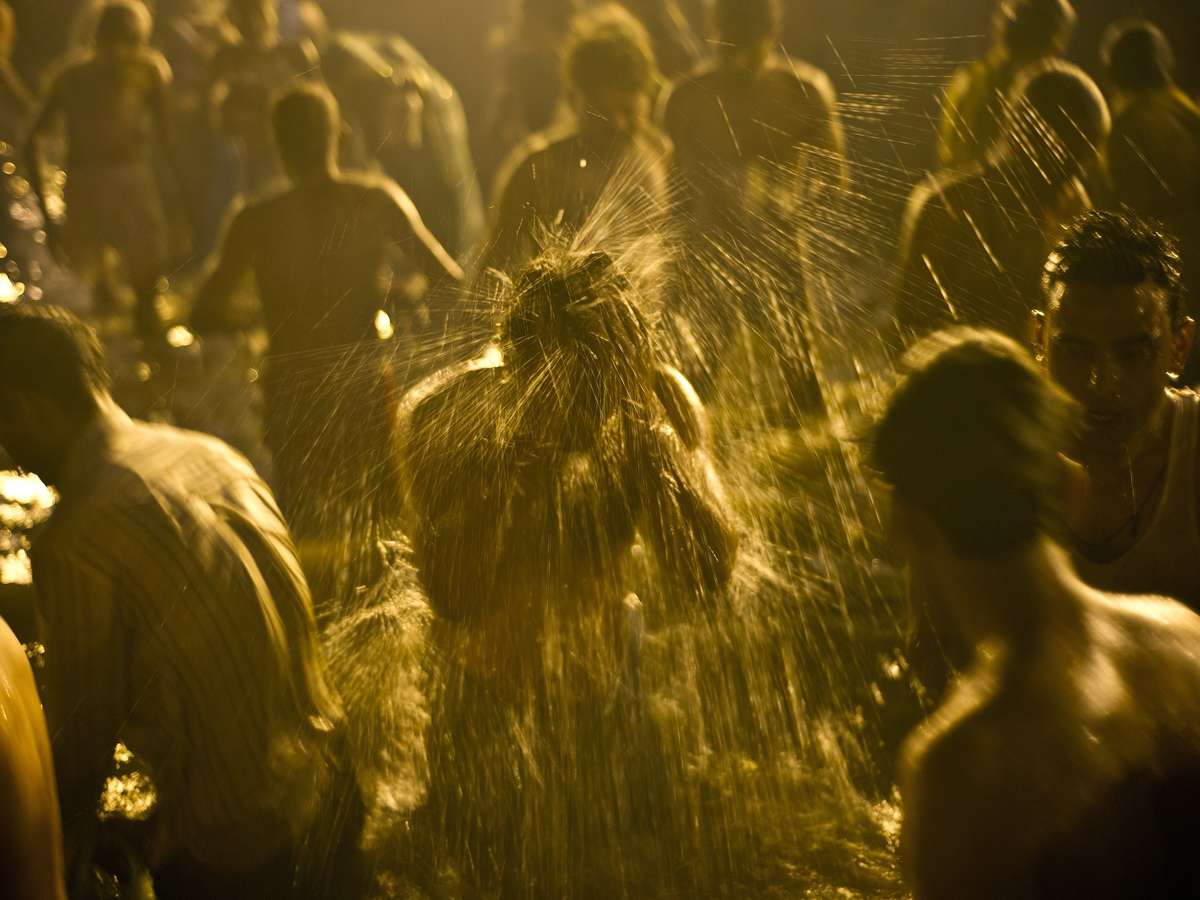 Fieis se deslocam para a Sangam, onde confluem três rios, entre eles o Ganges. No local se realiza um festival sagrado