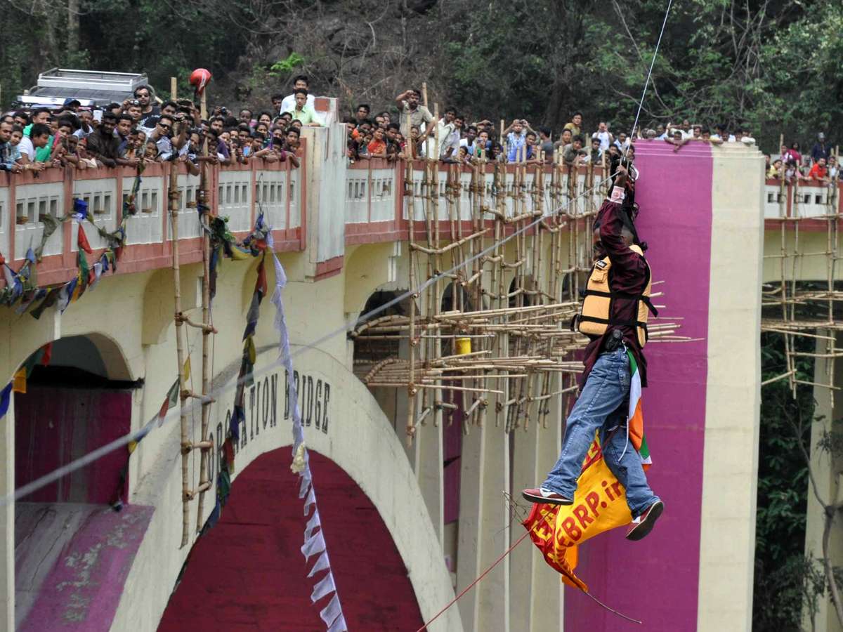 Roy tentava cruzar uma ponte sobre um rio nas proximidades da localidade de Siliguri no domingo suspenso por um cabo de cerca de 180 metros de comprimento, informou a BBC. Testemunhas disseram que ele travou após cruzar a metade do caminho.