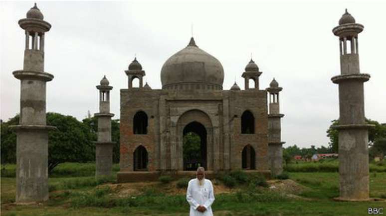 "Meu Taj tem apenas uma sala, bem pequena, diferente do original, que tem muitas salas e galerias ao redor dos túmulos. Mas quando você olha de longe, por causa da doma e minaretes, ele se parece exatamente como o Taj", explica Quadri.