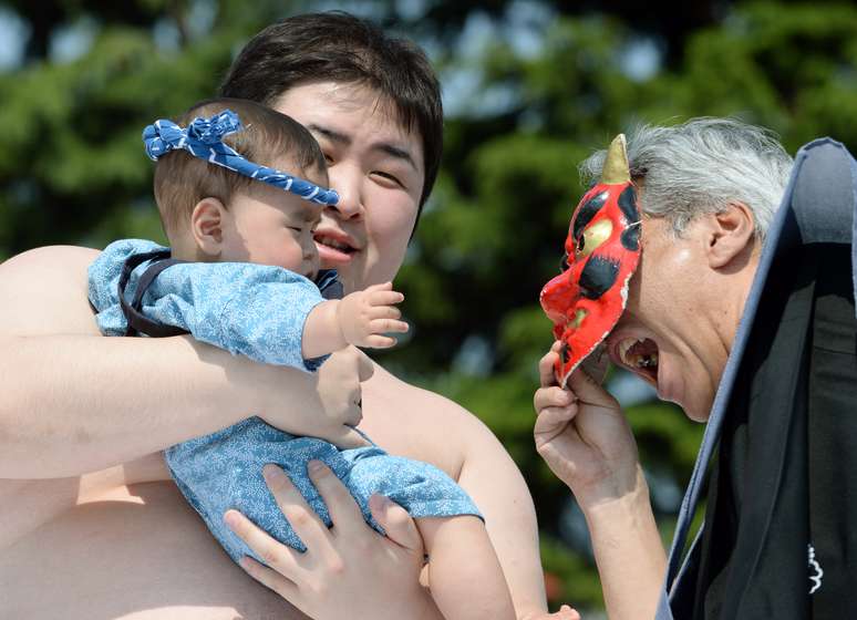 Concurso anual foi realizado hoje em Tóquio; pais japoneses acreditam que, ao fazerem os bebês chorarem, lutadores de sumô podem despertar neles o desejo de crescer com boa saúde