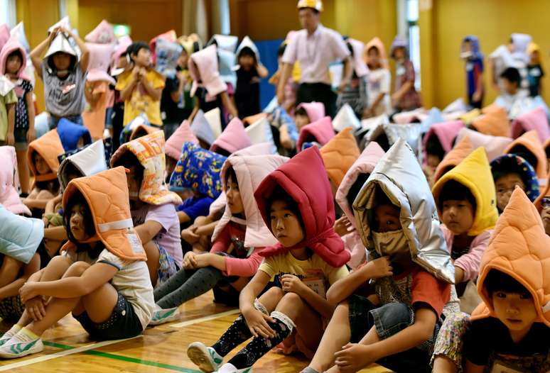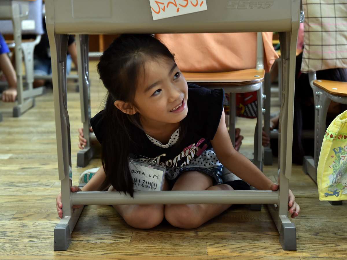 Milhares de crianças aprenderam a lidar com situações possíveis causadas por um terremoto de até 7,3 graus de magnitude na escala Richter, que pode atingir o país em poucos dias. Para o treinamento, as escolas do país trabalharam todos os procedimentos necessários com seus alunos, inclusive o uso de roupas especiais.