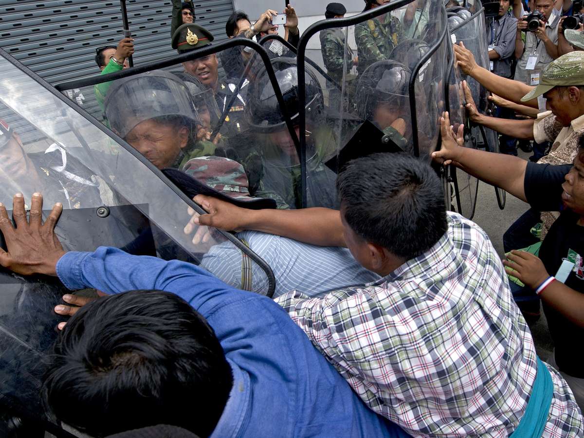 Milhares de manifestantes, que exigem há vários meses a renúncia da primeira-ministra tailandesa Yingluck Shinawatra, cercavam nesta segunda-feira, 17, a sede do governo, apesar de uma recente operação policial para desalojar a região.