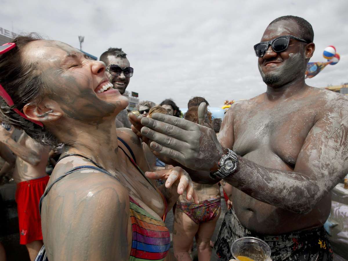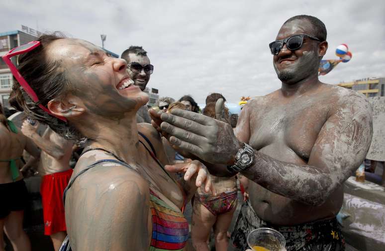 Centenas de sul-coreanos e turistas brincam em piscina de lama durante o 16º Festival de Lama de Boryeong, na praia de Daecheon, no oeste do país. Situada a cerca de 190 quilômetros da capital Seul, a cidade organiza o festival entre os dias 19 e 28 de julho. Turistas lotam a área para experimentar o banho de lama, rica em minerais e matéria-prima para a indústria de cosméticos local. Com a popularidade e crescente frequência do festival, novos eventos são realizados a cada ano no local