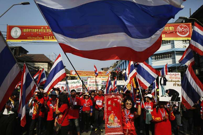 Manifestantes tomaram as ruas na mais recente onda de protestos de um conflito que já dura oito anos entre a classe média de Bangcoc, o sul de Thais e a elite governante contra os partidários rurais de Yingluck e seu irmão, o ex-premiê Thakin Shinawatra, que foi deposto por um golpe em 2006.