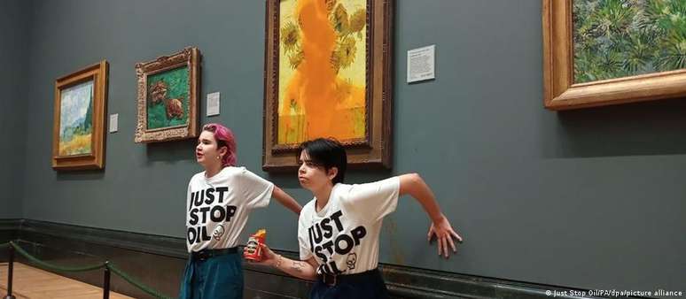 Na véspera, elas jogaram sopa de tomate na obra Girassóis do pintor holandês que está exposta na National Gallery, em Londres. Um vídeo do protesto viralizou nas redes sociais.
