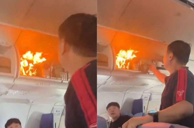 Nas redes sociais, vídeos mostram o momento em que a fumaça se espalha pelo bagageiro superior. Em um deles, um passageiro tenta puxar sua mala, mas alguém chama sua atenção e ele senta na poltrona. Em outro, é possível ver os tripulantes correndo em direção às chamas.