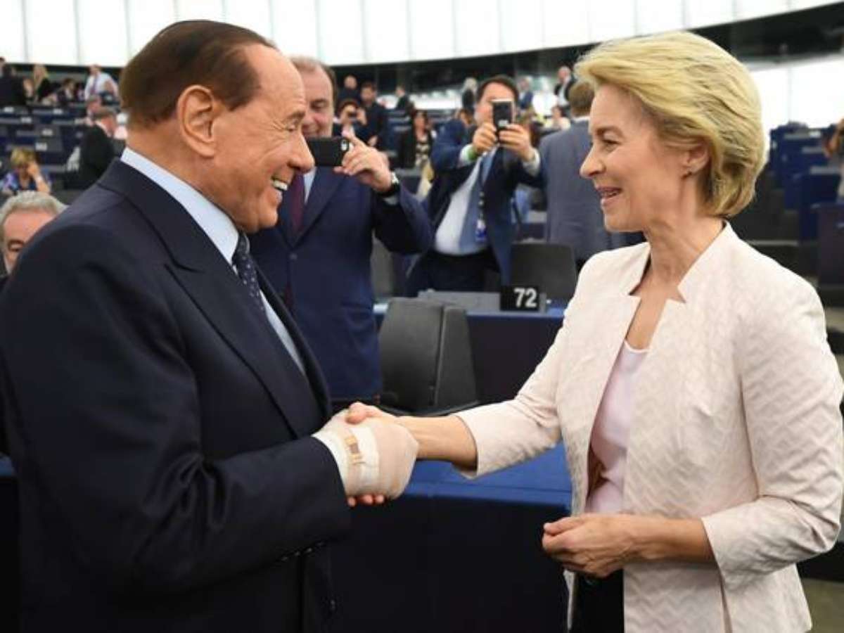 O ex-primeiro-ministro da Itália e eurodeputado Silvio Berlusconi apareceu na sessão desta terça-feira (16) do Parlamento da União Europeia, em Estrasburgo, com a mão direita enfaixada, fruto de um acidente durante uma partida de futebol.