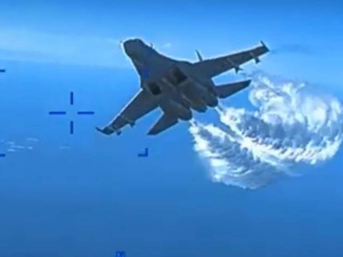 Em imagens divulgadas pelo Pentágono, nesta quinta-feira (16), é possível ver o momento em que um caça russo derruba um drone dos EUA. Segundo os Estados Unidos, a ação da Rússia foi proposital.