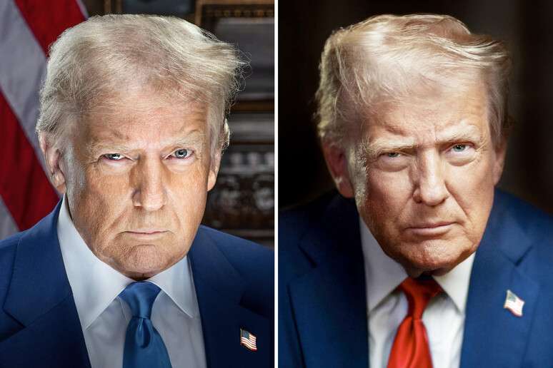 Na atual, Trump usa sua icônica gravata vermelha e suas feições são acentuadas por um jogo de sombras. Já na foto anterior, o magnata tinha um rosto mais iluminado e vestia uma gravata azul com a bandeira norte-americana ao fundo, enquanto na nova versão o cenário é todo preto.