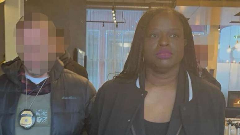 Mais cedo, a secretária de Segurança Interna, Kristi Noem, havia divulgado no X a foto original de Nekima Levy Armstrong — presa junto a outras duas pessoas por interromper um culto religioso em protesto contra a política migratória do governo federal — na qual ela aparece com o rosto sereno e expressão neutra.
