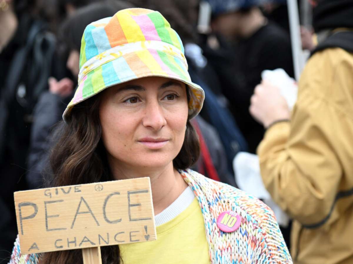 Centenas de pessoas se reuniram neste sábado (14) em Roma, na Itália, para protestar contra o presidente dos Estados Unidos, Donald Trump, e o primeiro-ministro de Israel, Benjamin Netanyahu, em razão da guerra no Oriente Médio.