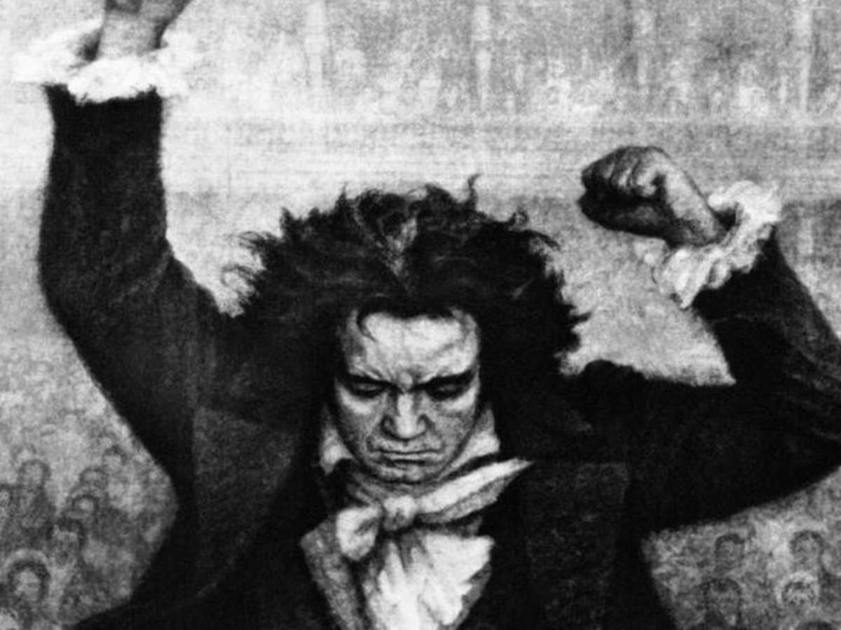 De costas para o público, Beethoven dirigiu os músicos com uma paixão desenfreada, sacudindo o corpo e agitando os braços no ritmo da música.