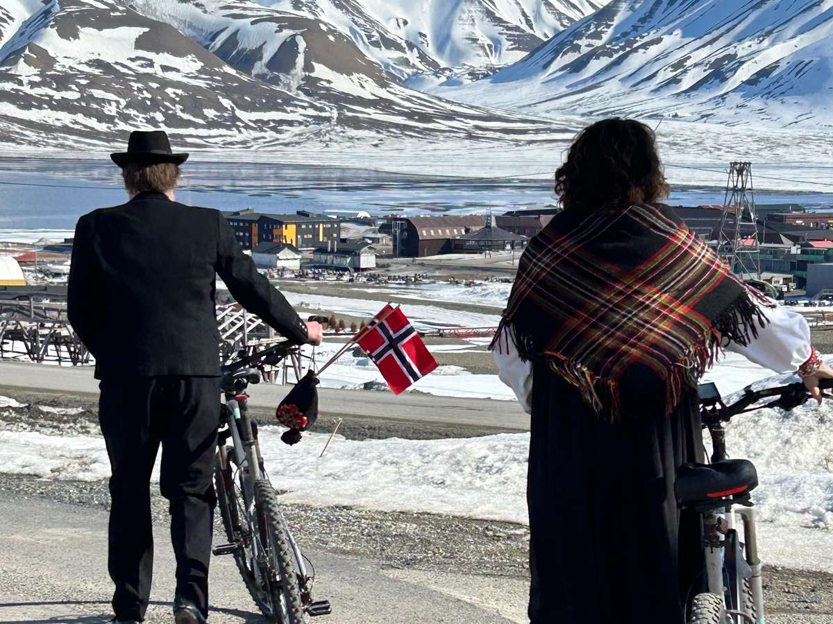 Para onde quer que eu olhe, vejo vitrines de lojas, carrinhos de bebê e penteados adornados com as cores da bandeira norueguesa. Talvez eu tenha imaginado isso, mas em meio a toda a alegria, parecia que havia outro sentimento não dito naquele dia, um lembrete: "Svalbard pertence a nós!