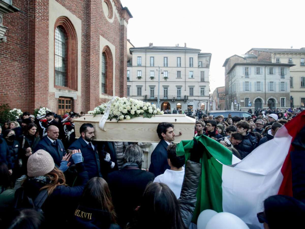 A cerimônia na Basílica de Santa Maria das Graças, repleta de flores e bexigas brancas, teve a presença de autoridades e políticos italianos, incluindo o ministro da Educação, Giuseppe Valditara, que cobrou que a Suíça esclareça o caso "o mais brevevemente possível".