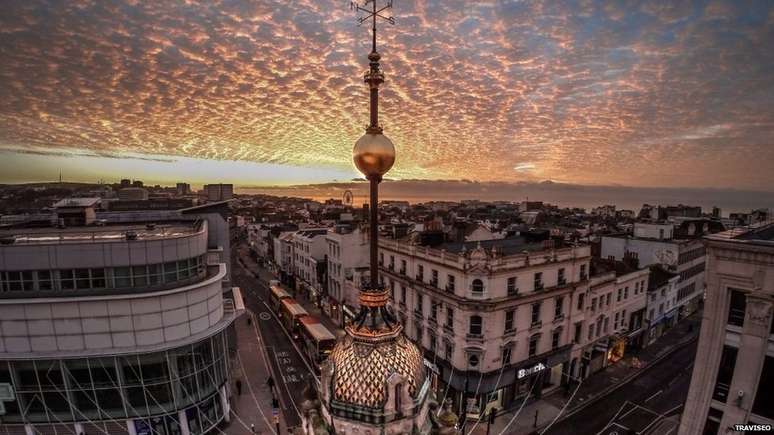 Para o fundador do Dronestagram, "todas as fotos têm características próprias, que as tornam lindas e incríveis" (Pôr do sol sobre Brighton, Reino Unido)/ Foto: Traviseo
