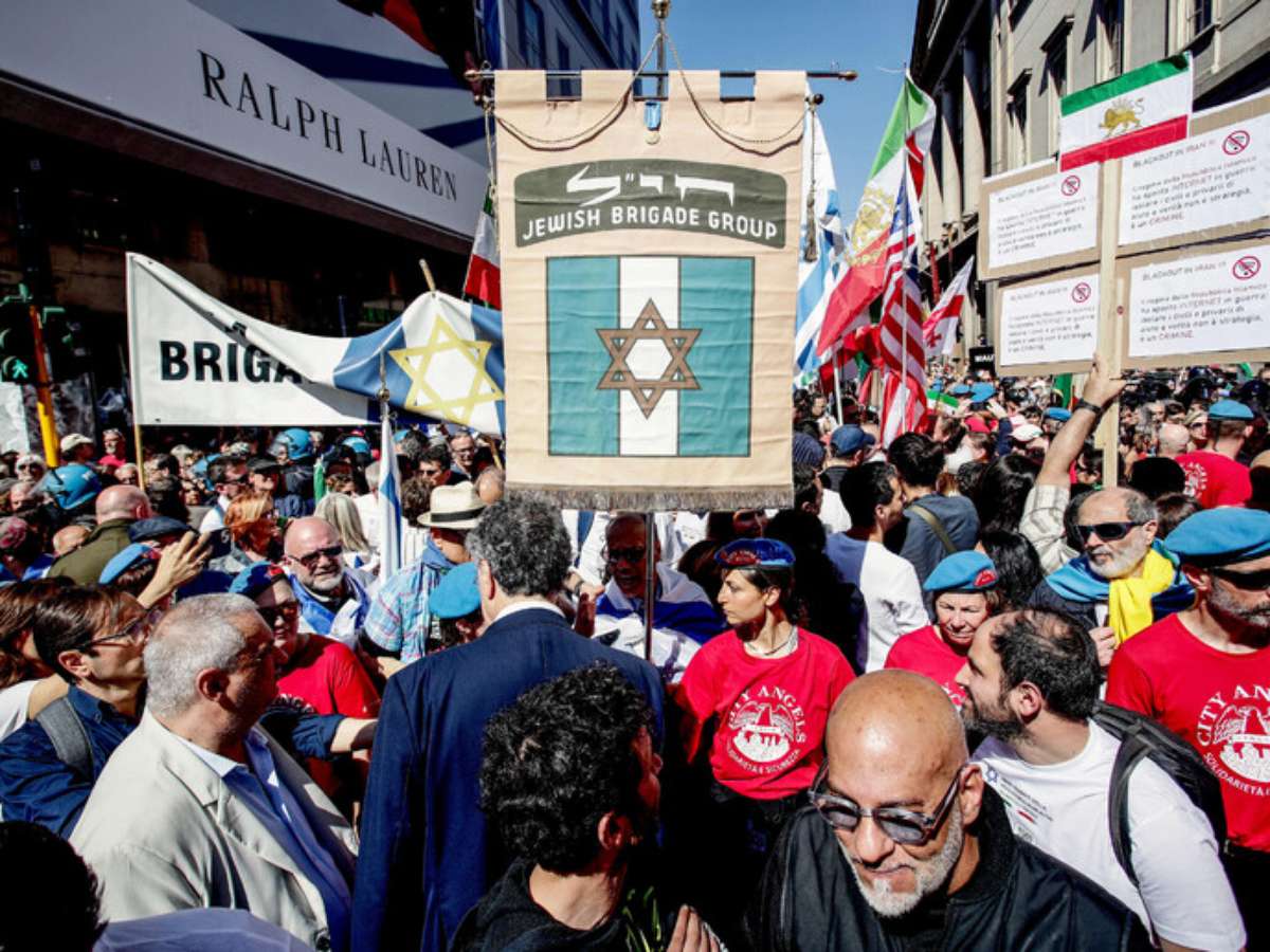 Em Milão, um grupo chamado Brigada Judaica, em homenagem à milícia do Exército britânico que combateu nos últimos estágios da campanha pela libertação italiana, foi contestado por militantes pró-Palestina com gritos de "vergonha" e escoltado para fora da passeata pela polícia.