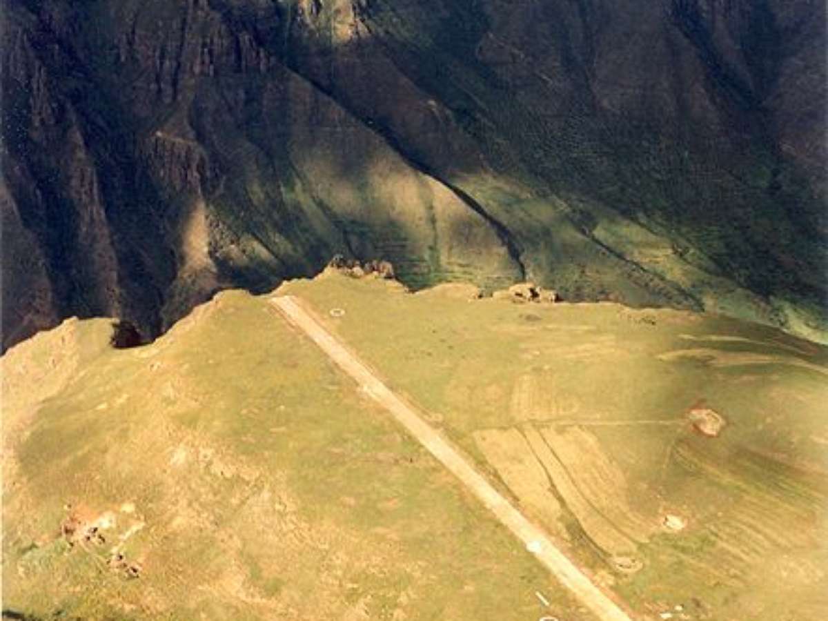Aeroporto de Maketane, África: a pista "emocionante" é curta e fica próxima a um precipício - o que significaria uma possível queda mortal. Além disso, algumas montanhas altas estão bem próximas dali
