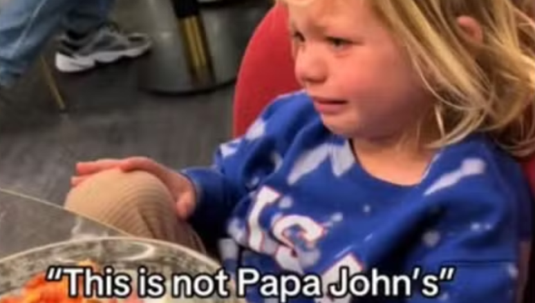 Criança de 3 anos viraliza ao chorar em restaurante Michelin por desejar pizza da rede Papa John's, simbolizando um hábito familiar nostálgico e afetivo para sua família militar.