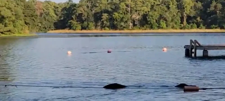 Um grupo de crianças ficou frente a frente com um grande crocodilo no Lago Raven, no Parque Estadual de Huntsville, em Houston, nos Estados Unidos, no fim de semana. Um vídeo registrado por uma testemunha que estava no local mostra o animal nadando próximo das pessoas. As informações são da estação de televisão Fox 26.