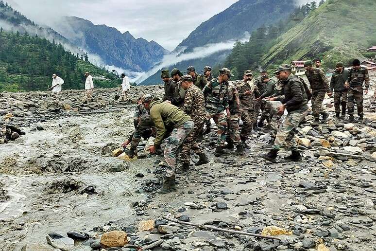 A avalanche de lama atingiu também um campo de treinamento do exército da Índia, e uma centena de militares está entre os soterrados, além de cerca de 100 residentes. Equipes de socorro com cães e drones seguem trabalhando nos resgates.