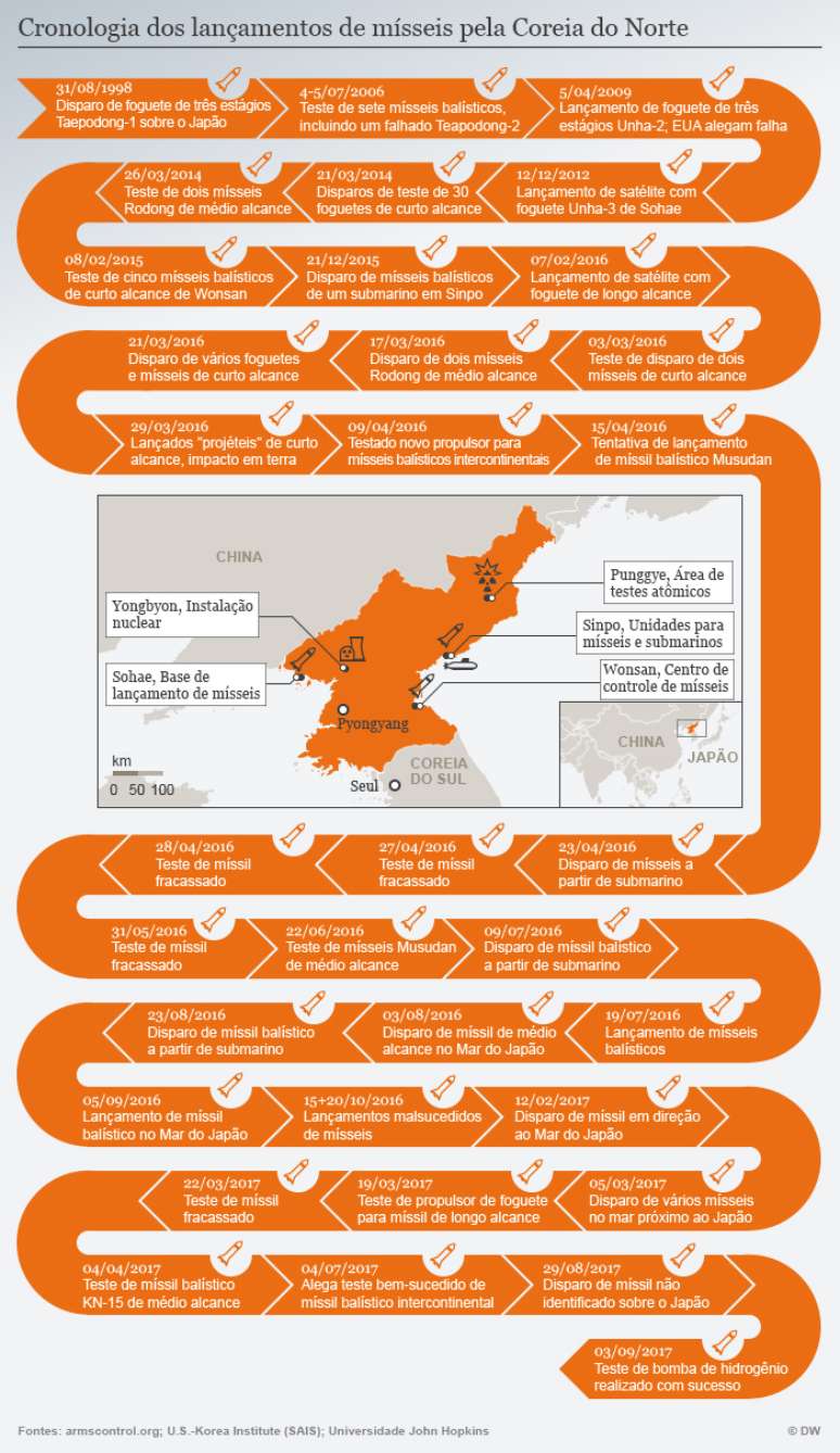 Somente no início de agosto que o Conselho de Segurança concordou com uma resolução da ONU que adota as sanções mais duras fechadas até hoje contra a Coreia do Norte. Por um lado, o país foi proibido de exportar carvão e ferro, mas também peixes e frutos do mar, deixando de vender produtos no valor de cerca de 1 bilhão de dólares. Além disso, várias organizações foram colocadas na lista negra da ONU, incluindo o banco de operações cambiais da Coreia do Norte.