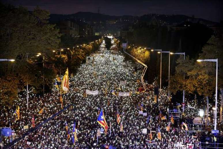 Pelo menos um milhão de separatistas tomaram às ruas de Barcelona nesta terça-feira (11) para celebrar o "Dia da Catalunha" (A Diada) com uma manifestação de apoio à independência da região autônoma. De acordo com as forças independentistas, o ato convocado pela Assembleia Nacional Catalã (ANC) foi o "ponto inicial" de outras mobilizações previstas para o restante do ano. O número de presentes foi divulgado pelas autoridades locais em sua conta no Twitter e supera o revelado pelos organizadores, que falaram entre 440 e 460 mil presentes. A manifestação começou na Plaça de les Glòries e terminou no Palau Reial de Pedralbes, que serviu de palco para os discursos de encerramento.