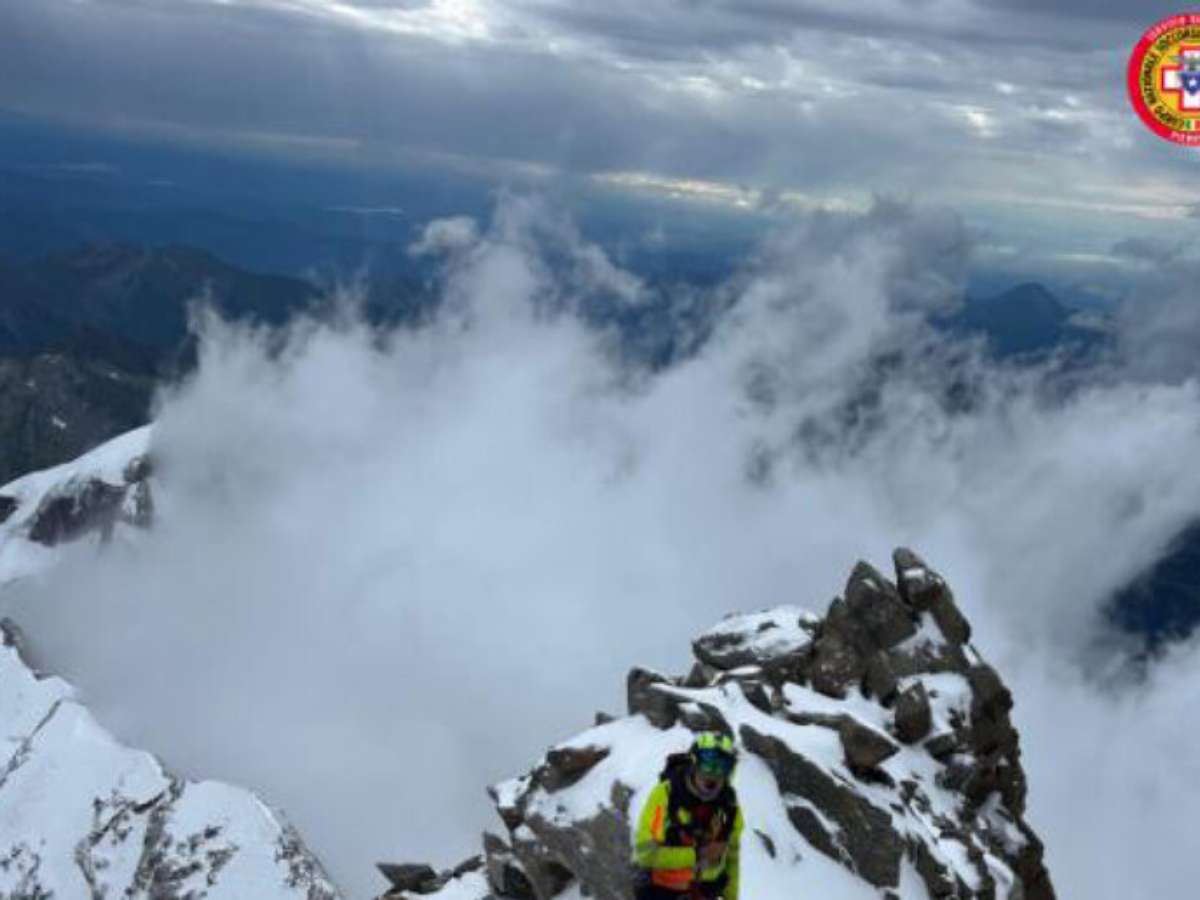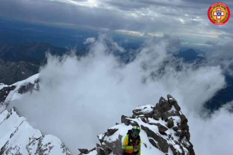 O resgate foi acionado hoje cedo após a falha no contato com os alpinistas, que passaram a noite no refúgio Quintino Sella. A dupla foi localizada durante um sobrevoo de helicóptero.
