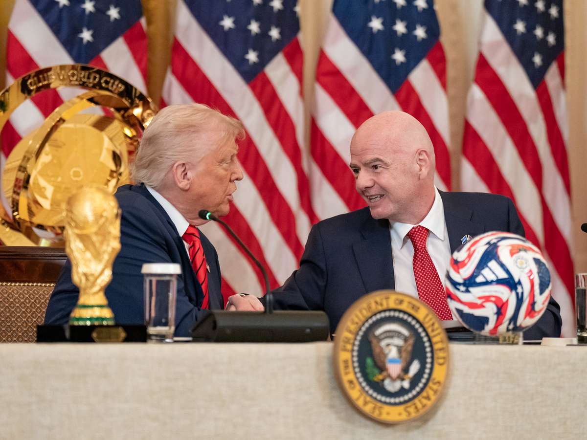 "Não sabia. Isso está correto?", disse Trump. Infantino prontamente respondeu que "por enquanto, estão impedidos de jogar", mas que espera que a paz seja alcançada para que a Rússia possa ser readmitida.