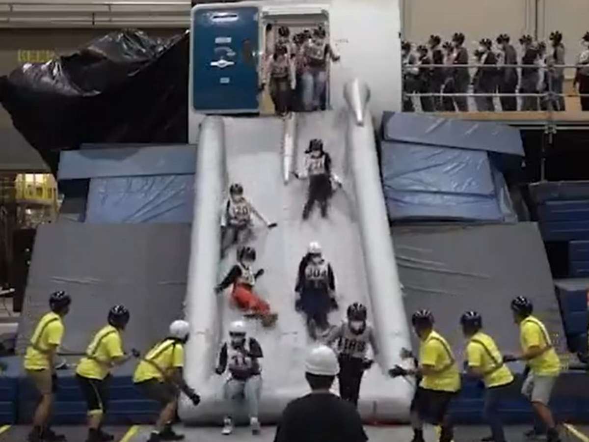 A ação ocorreu no Arizona, nos Estados Unidos, e foi promovida pela Collins Aerospace, empresa que fabrica equipamentos aeronáuticos, especialmente, sistemas infláveis de evacuação de emergência. Os escorregadores são testados com frequência para garantir que os passageiros consigam sair da aeronave em até 90 segundos, conforme as normas de aviação.