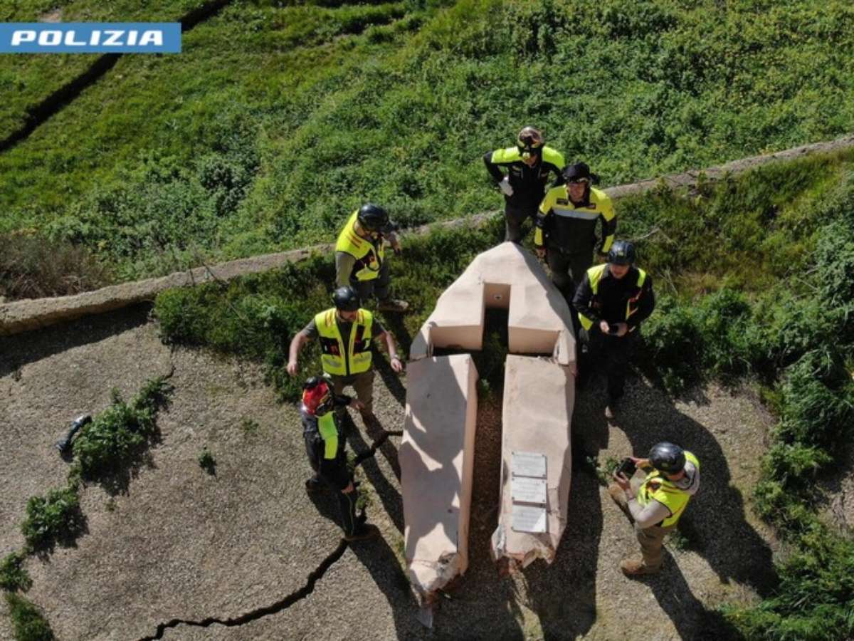 Equipe de resgate recupera cruz símbolo de resistência em Niscemi, na Itália