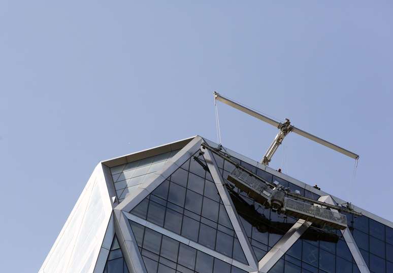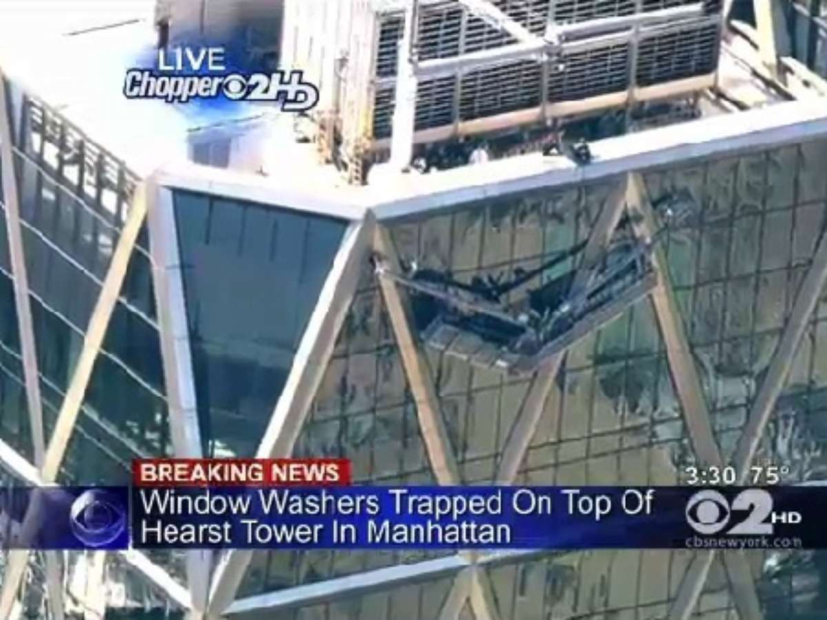 Dois trabalhadores que limpavam as janelas da Torre Hearst, arranha-céu de 46 andares em Manhattan, ficaram presos a quase 200 metros de altura na tarde desta quarta-feira. A plataforma na qual eles trabalhavam aparentemente cedeu e os homens ficaram pendurados no alto da torre.