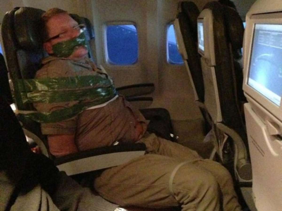 "Ele bebeu uma garrafa inteira de licor nas primeiras duas ou três horas do voo", disse Andy Ellwood, morador de Manhattan que postou a foto do homem preso ao assento em seu blog pessoal.