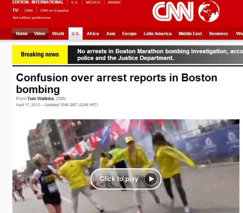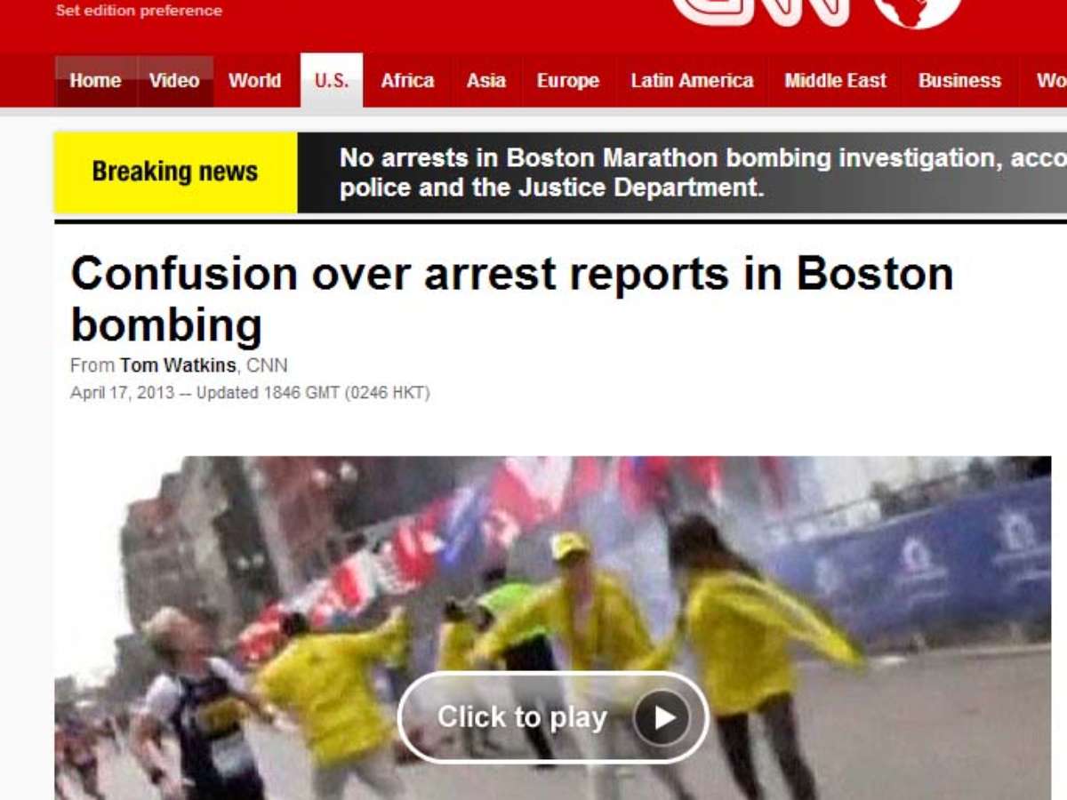 Ao voltar atrás, a rede de TV americana noticiou que houve uma "confusão" na divulgação das informações. Na notícia em que esclareceu o episódio, disse que um agente havia dito: "Nós o pegamos". No entanto "não foi esclarecido se isso signicava que um suspeito havia sido idenditificado ou preso". A CNN disse ainda que algumas fontes federais ligadas à investigação informaram que ainda era muito cedo para afirmar que os investigadores haviam identificado o suspeito, enquanto outras fontes em Boston foram enfáticas em dizer que havia de fato alguém identificado.