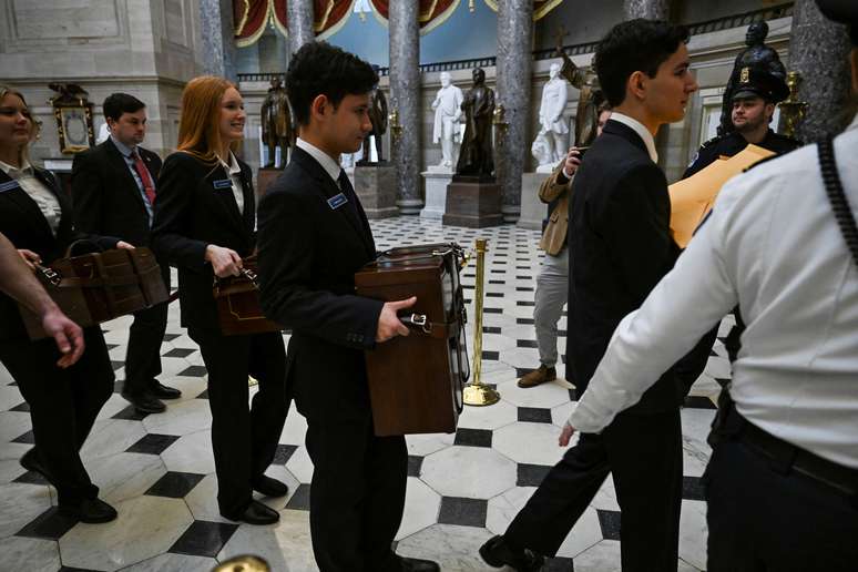 Donald Trump teve sua vitória nas eleições presidenciais dos Estados Unidos certificada nesta segunda-feira, 6, em sessão solene na sede do Congresso americano, o Capitólio, em Washington. Lá, os votos dos delegados foram contabilizados novamente – e levados em caixas que são usadas há quase 150 anos.