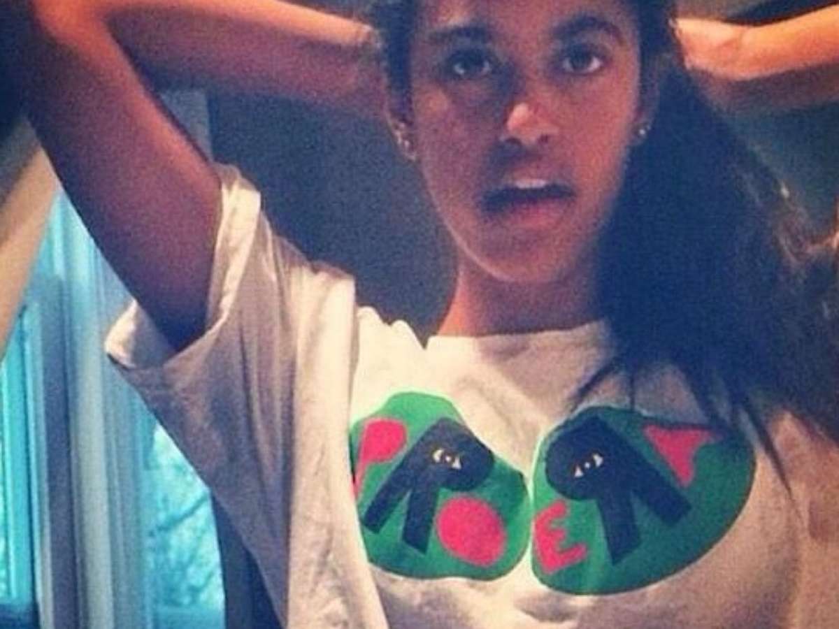 A foto da adolescente, que segundo a imprensa americana pode não ser de Malia, foi publicada no domingo via Instagram pelo Pro Era, uma associação de rap do Brooklyn que vende camisetas.