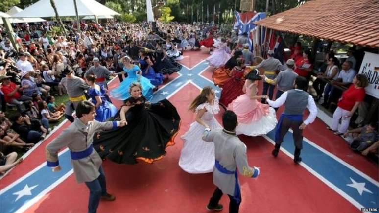 "A Festa Confederada tem coisas que são estereótipos do sul do país (EUA) como dançar 'square dance' (semelhante à quadrilhas), comer frango frito e ouvir George Strait (cantor de country)", conta Asher Levine, correspondente da agência de notícias Reuters em São Paulo.