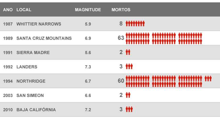 Doug Smith, um veterano jornalista de dados do jornal Los Angeles Times, esteve presente em grandes terremotos do passado, inclusive o de Northridge, cujo epicentro foi próximo de uma universidade às 4h30 da manhã. Após o tremor, materiais tóxicos do laboratório da universidade vazaram. “Com certeza, teríamos centenas de milhares de mortos, caso o terremoto tivesse ocorrido algumas horas mais tarde. Seria um desastre de enormes proporções”, analisa Smith.