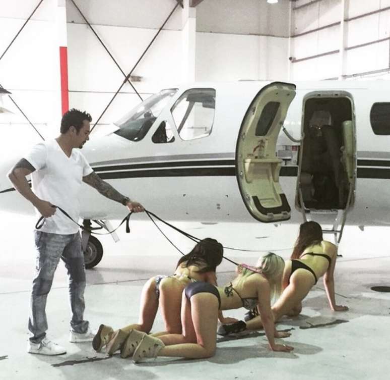 Neste final de semana, o novo “Rei do Instagram” polemizou ao postar uma imagem de mulheres engatinhando, amarradas em coleiras, entrando em um jatinho. A publicação seria sua resposta ao magnata do tabaco Travers Beynon que teria publicado uma imagem semelhante de sua mulher, Taesha, enquanto a segurava por suas alças de biquíni.